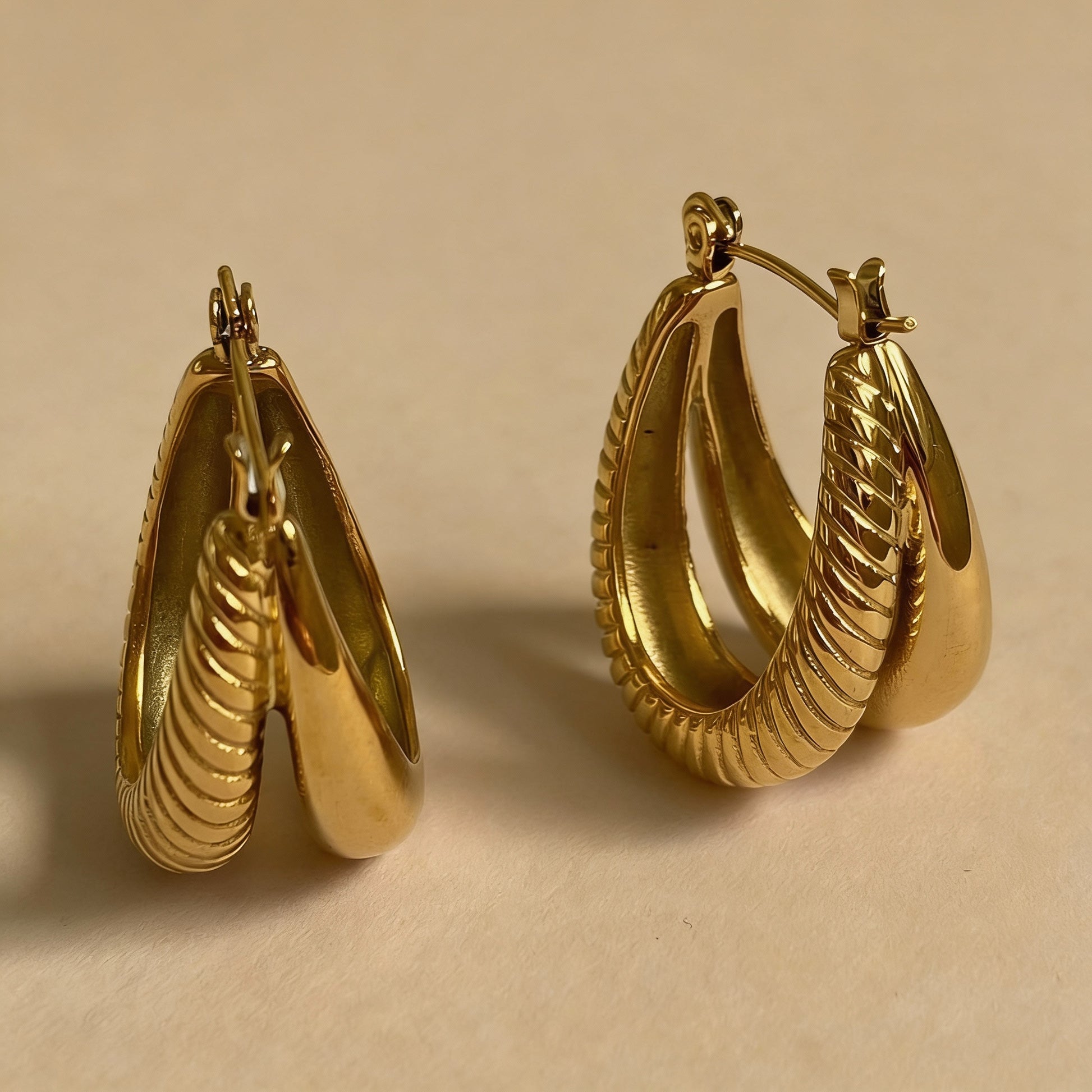 These Maria Earrings are a luxurious and exclusive statement piece. Crafted from premium stainless steel and coated with 18K gold, they are not only waterproof but also exude sophistication. Add a touch of elegance to any outfit with these eye-catching earrings.